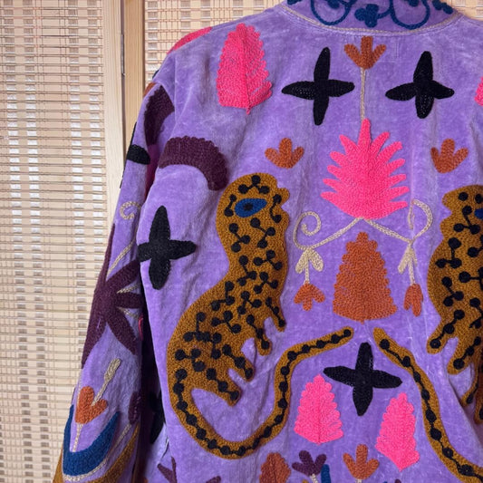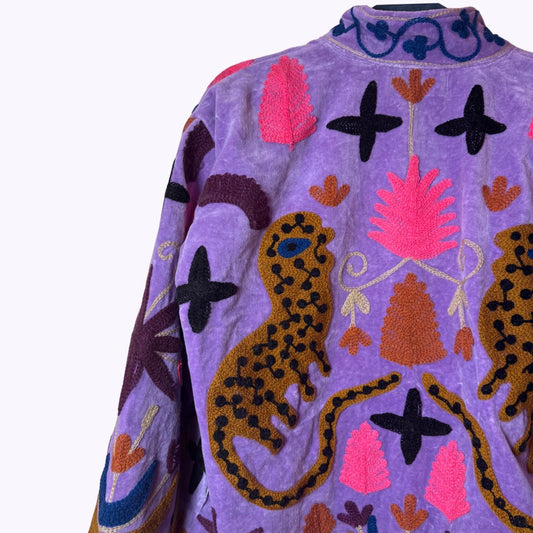 handgefertigte Velvet Jacke " Wild Flowers" Lavender Love