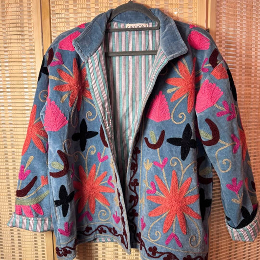 handgefertigte Velvet Jacke " Wild Flowers" Blue Moon