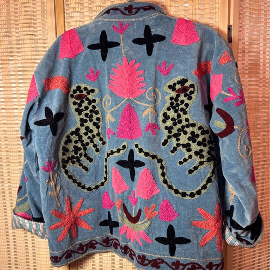 handgefertigte Velvet Jacke " Wild Flowers" in dusty teal