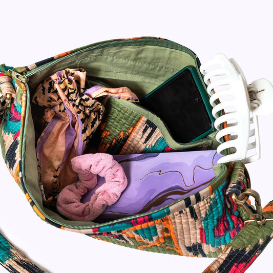 Upcycelte Banjara Taschen aus Indien, Berbertaschen aus Marokko, handgeflochtene Strohtäschchen oder handgebatikte XL Clutches aus Thailand.