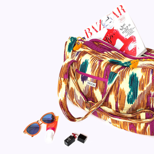 Neben unseren beliebten Reisetaschen bieten wir auch einzigartige XL Weekender aus traditionellen SUZANI Stoffen an, die super stabil und strapazierfähig sind.