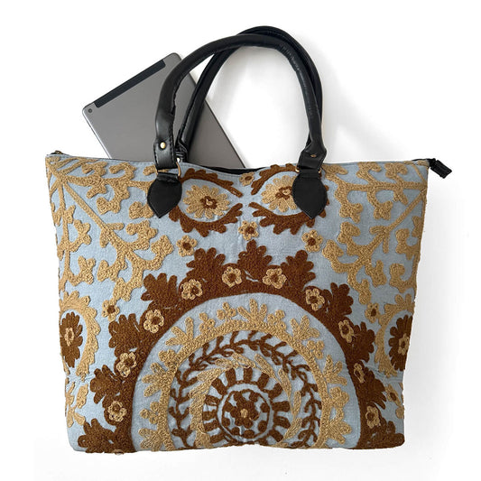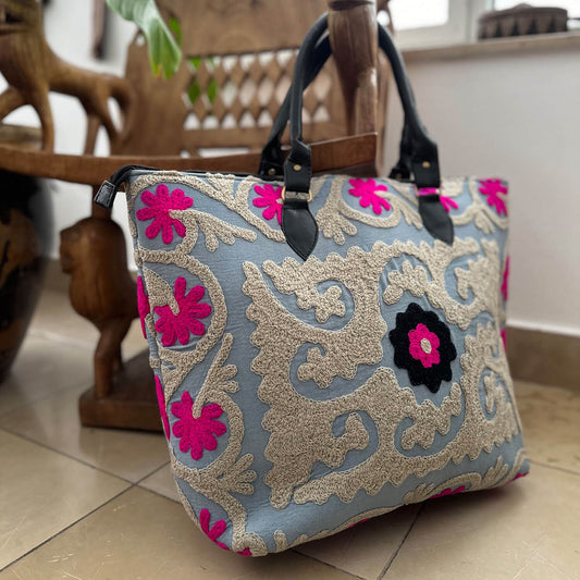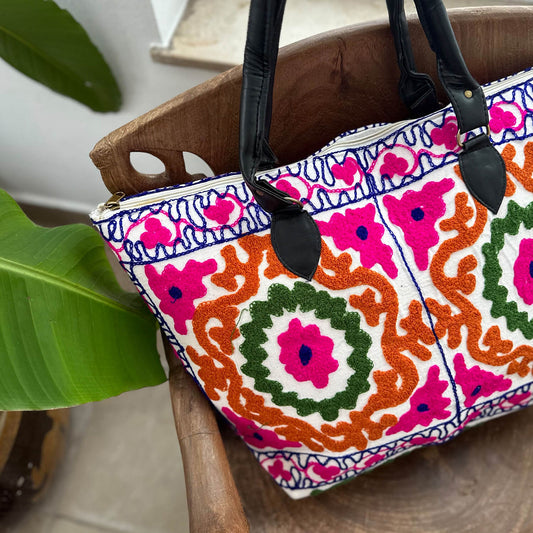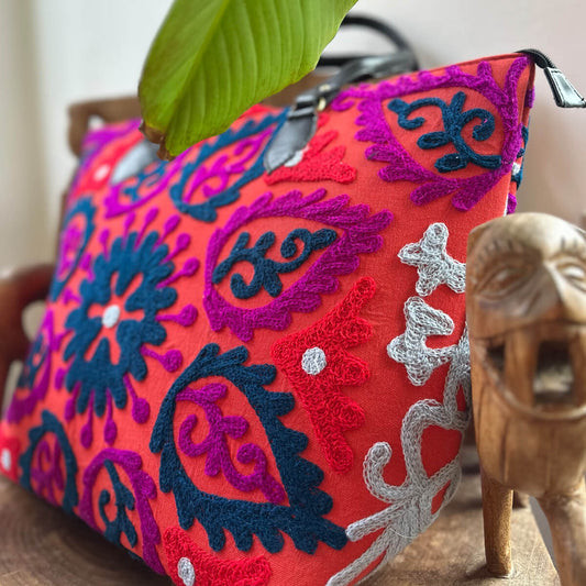 Neben unseren beliebten Reisetaschen bieten wir auch einzigartige XL Weekender aus traditionellen SUZANI Stoffen an, die super stabil und strapazierfähig sind.