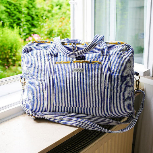 Unsere Reisetaschen sind echte Allroundtalente und Hingucker. Egal ob als Wickeltasche, Weekender oder Officebag. Unsere Reisetaschen mit Koffer Sleeve kannst du vielseitig verwenden. In gängiger Handgepäckgröße sind sie deine idealen Reisebegleiter. Auch als "Mumbag" und Wickeltasche sind Sie super geeignet , da der Schultergurt längenverstellbar ist und du sie so ideal an deine "Buggy-Griff- Größe" anpassen kannst.