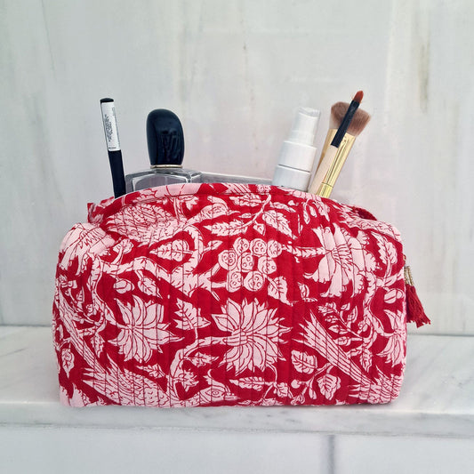 Handgemachte Kosmetiktasche "Red Garden"