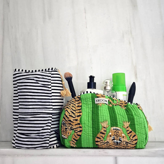 Handgemachte Kosmetiktasche "poppy Tiger" green