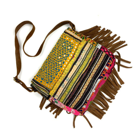 AusverkauftHandgefertigte Leder Fringe Tasche "Stars"