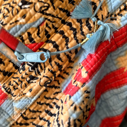 - Ober und Innenmaterial aus reiner Baumwolle mit Kantha-Bestickung und (Blockprint) Holzstempel Druck mit natürlichen / azo-freien Farbstoffen