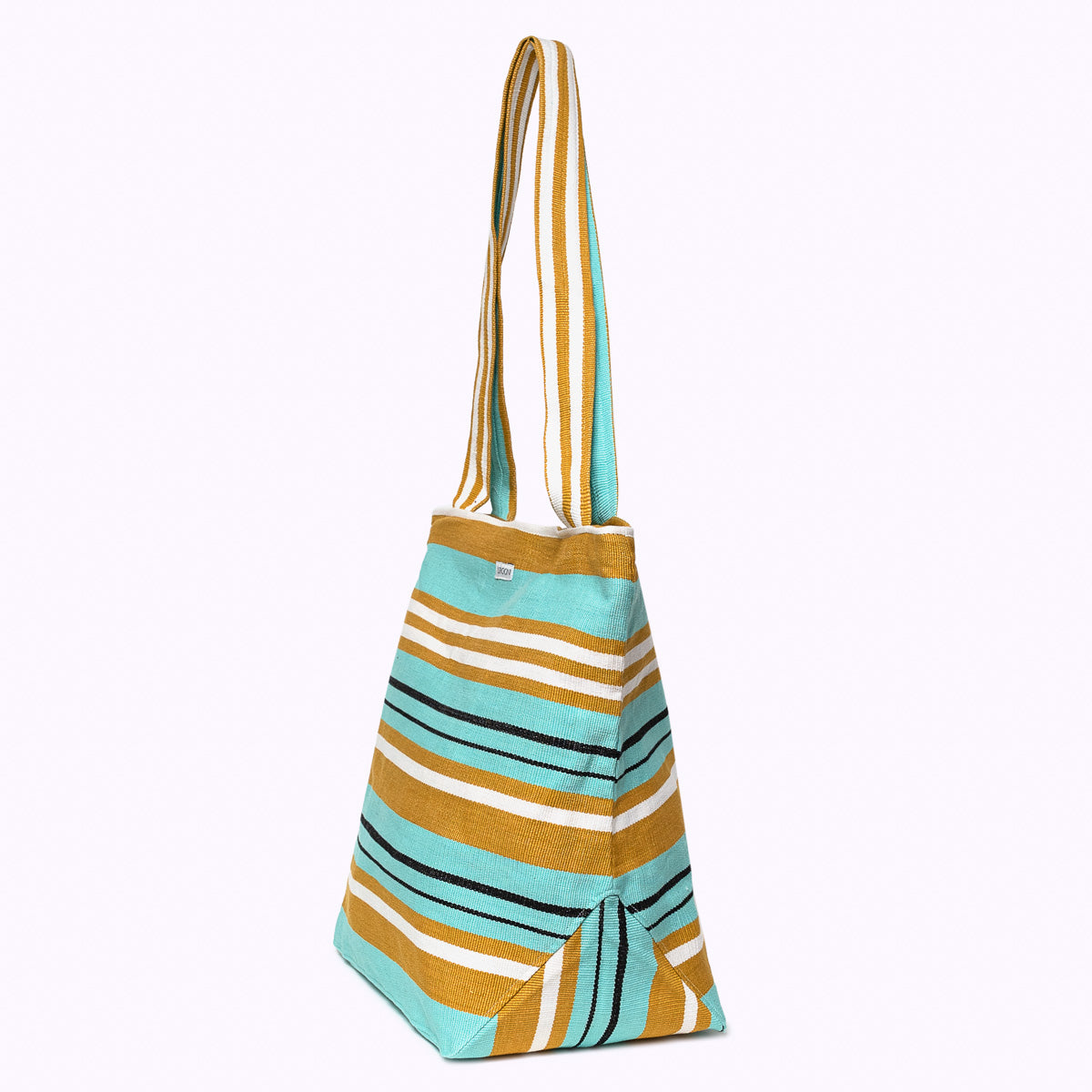 Happy Vibes! Die handgewebte Strandtasche "LA PLAYA" aus Guatemala versprüht Leichtigkeit und hat einen einzigartigen Charakter! Jede Tasche ist einzigartig und von Hand hergestellt. Nach “altem” und traditionellem Verfahren und in modernerem, westlichen Design werden die Taschen aus Guatemala handgefertigt. Das guatemaltekische Frauenkollektiv in San Martin webt auf einem “back-strap” Webstuhl und und kreiert damit wunderbare Accessoires, die von hoher und robuster Qualität geprägt sind. Die handgewebte Strandtasche "LA PLAYA" aus Guatemala überzeugt durch farbenfrohes Design und großartige Qualität. Zu schliessen mit einem Reissverschluss und mit einer großen Innentasche ausgestattet , die ebenfalls mit einem Reissverschluss zu schliessen ist, kannst du hier auch deine wichtigen Accessoires, wie Schlüssel und Handy unbesorgt mit an den Strand oder zum Stadtbummel mitnehmen. Mit den extra langen Henkeln kannst du sie super bequem über jedes Outfit tragen. Frauenkollektiv aus Guatemala Das Frauenkollektiv besteht aus insgesamt 400 Frauen, die gemeinsam ein komplett selbstständiges Unternehmen führen. Verteilt auf 17 Webereien, arbeiten sie im Hochland Guatemalas an besonderen Accessoires wie Kosmetiktaschen, Geldbeutel, Taschen und Schmuck. Wir zahlen gerne einen der Arbeit angemessenen Preis, möchten Hilfe zur Selbsthilfe leisten und eine Unterstützung dabei sein, den Lebensstandard der Frauen und deren Familien zu verbessern! Ganz im Namen der #womenempowerwomen Bewegung sind wir stolze Partner und dankbar für die Möglichkeit, feminine Einzigartigkeit in der westlichen Welt zu versprühen! Guatemala Wer Guatemala kennt, der weiß, dass das der zentralamerikanische Staat für seine zahlreichen Maya-Ruinen bekannt ist. Die Kultur des Landes findet sich in Fashion Accessoires aus Guatemala, das Kunsthandwerk einen besonderen Stellenwert hat, wieder. Ob Textilien oder individuelle Kosmetiktaschen aus Guatemala – die Farbenpracht der Fashion Accessoires aus Guatemala ist unglaublich. Kosmetik- und Kulturtaschen: faire Bezahlung für einzigartige Handarbeit ist – ebenso wie die gute Qualität – ein absolutes Muss. Details: Maße ca ( LxHxT) : 43 cm x 37 cm x max. 16 cm Obermaterial aus reiner Baumwolle - handgewebt und gefärbt mit Naturfarben geräumiges Hauptfach zu schließen mit einem Reißverschluss und mit off weissem Baumwollinnenfutter. Innentasche , zu schliessen mit Reissverschluss Lange Tragehenkel ( 34 cm über dem Reissverschluss)