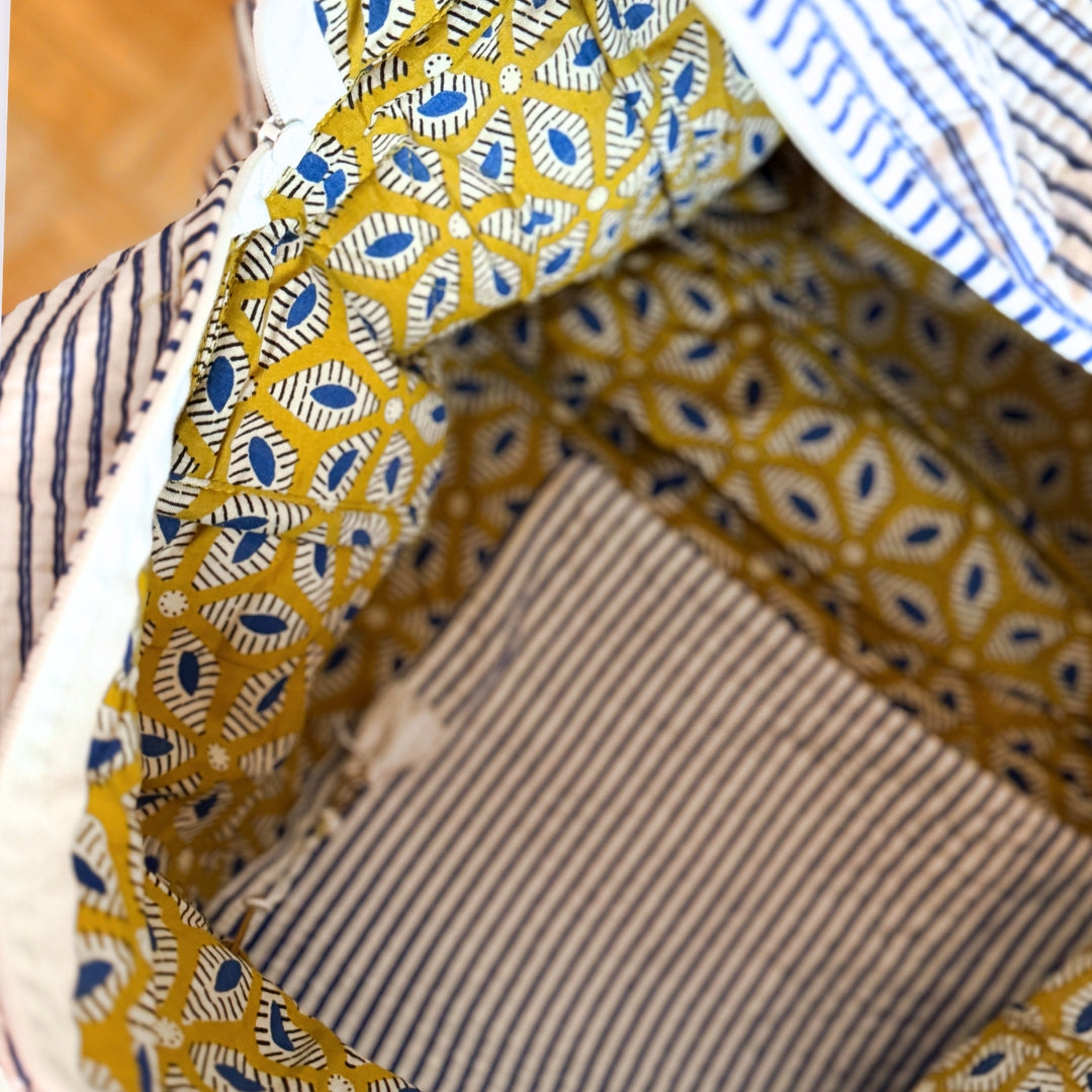 Grosse Reisetasche "Seaside clean"  - deine einzigartige Reisetasche in Handgepäck Größe aus handbedruckter Baumwolle.