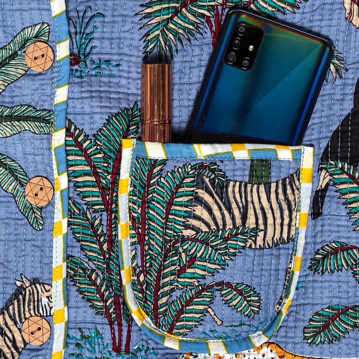 Unsere handgefertigten Jacken sind mehr als nur Kleidung – sie sind kleine Kunstwerke. Jede einzelne wird mit viel Liebe und in traditioneller Handarbeit im Blockprint oder Screenprint handbedruckt. So entsteht ein Stück voller Individualität – charaktervoll, modern und absolut einzigartig.