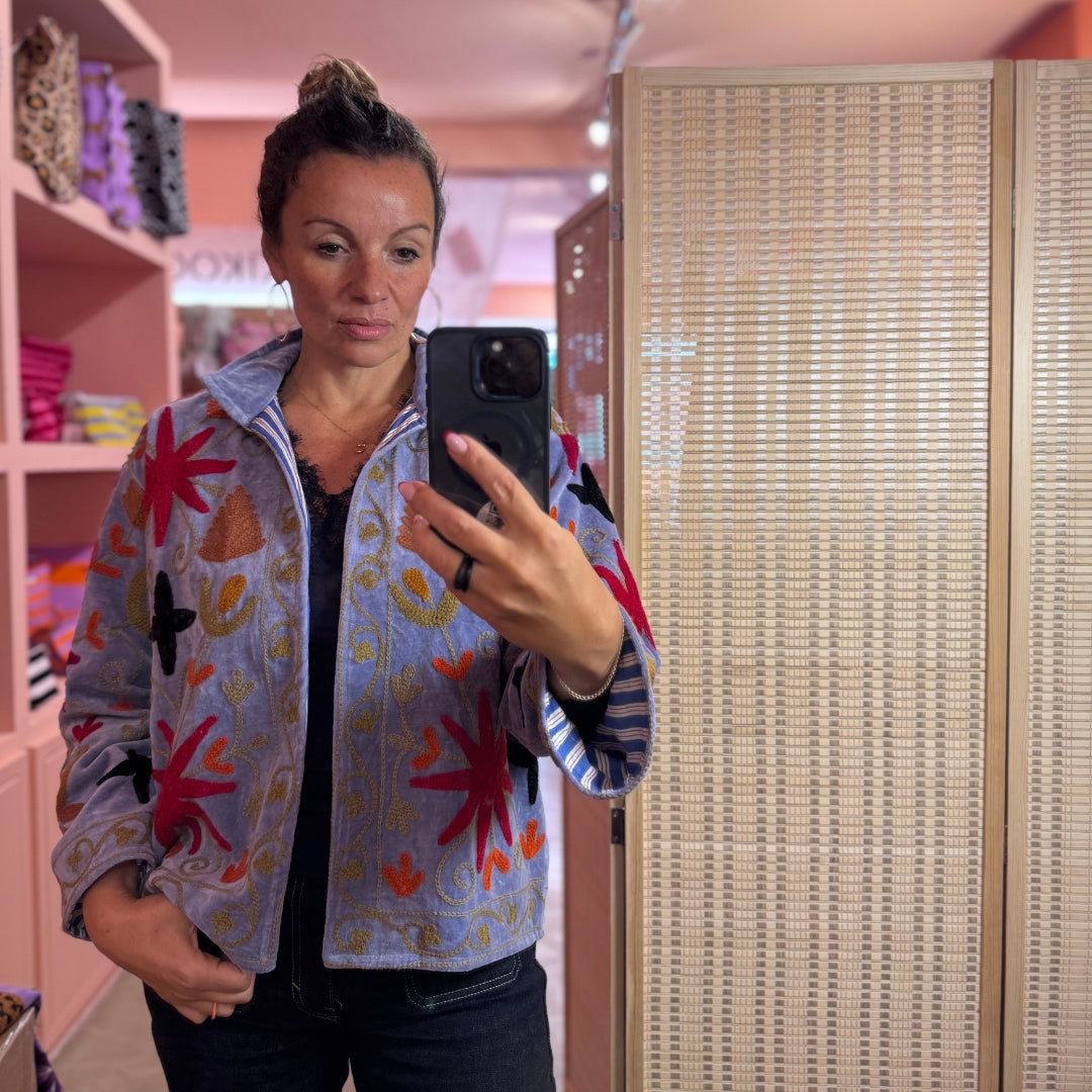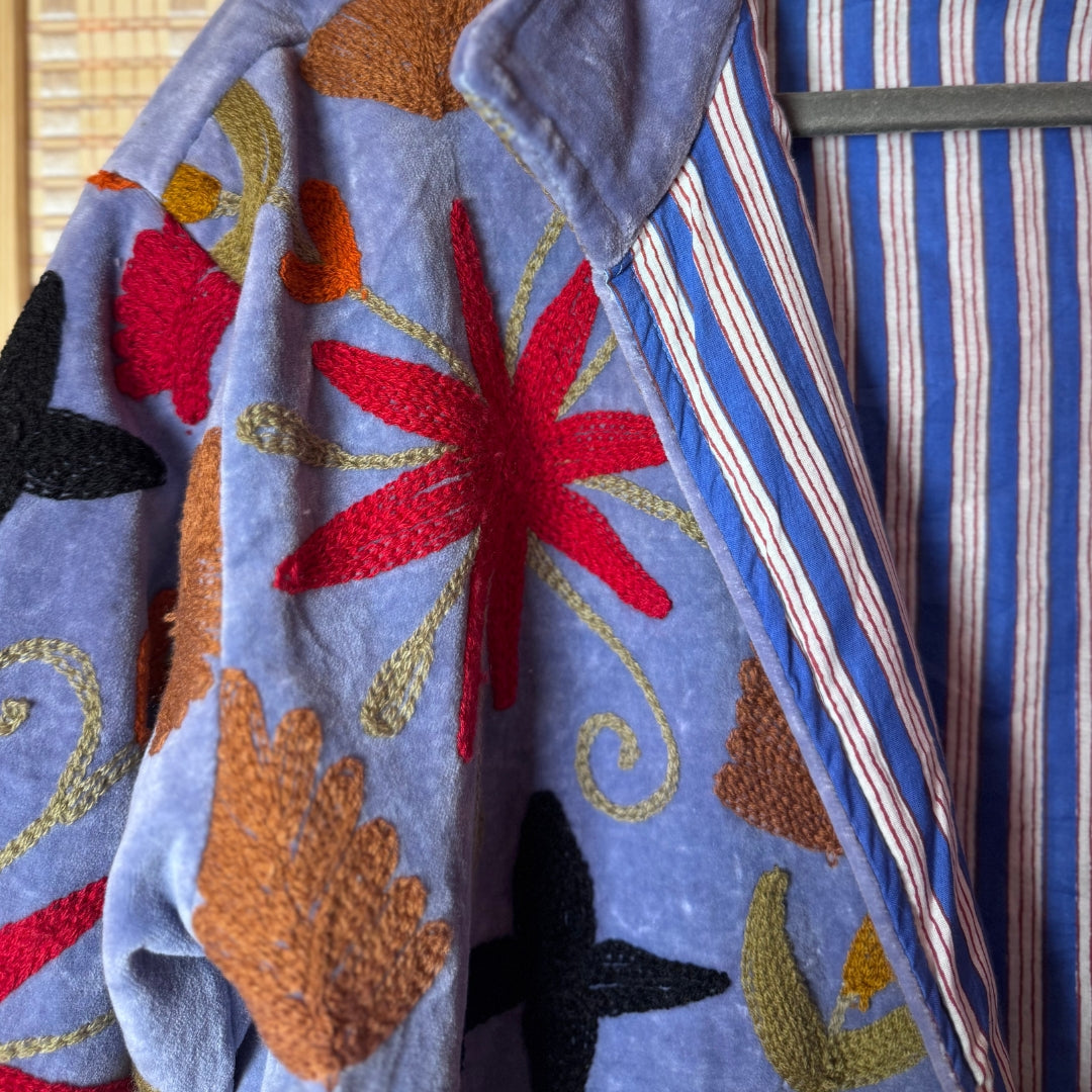 handgefertigte Velvet Jacke " Wild Flowers" Blue Moon