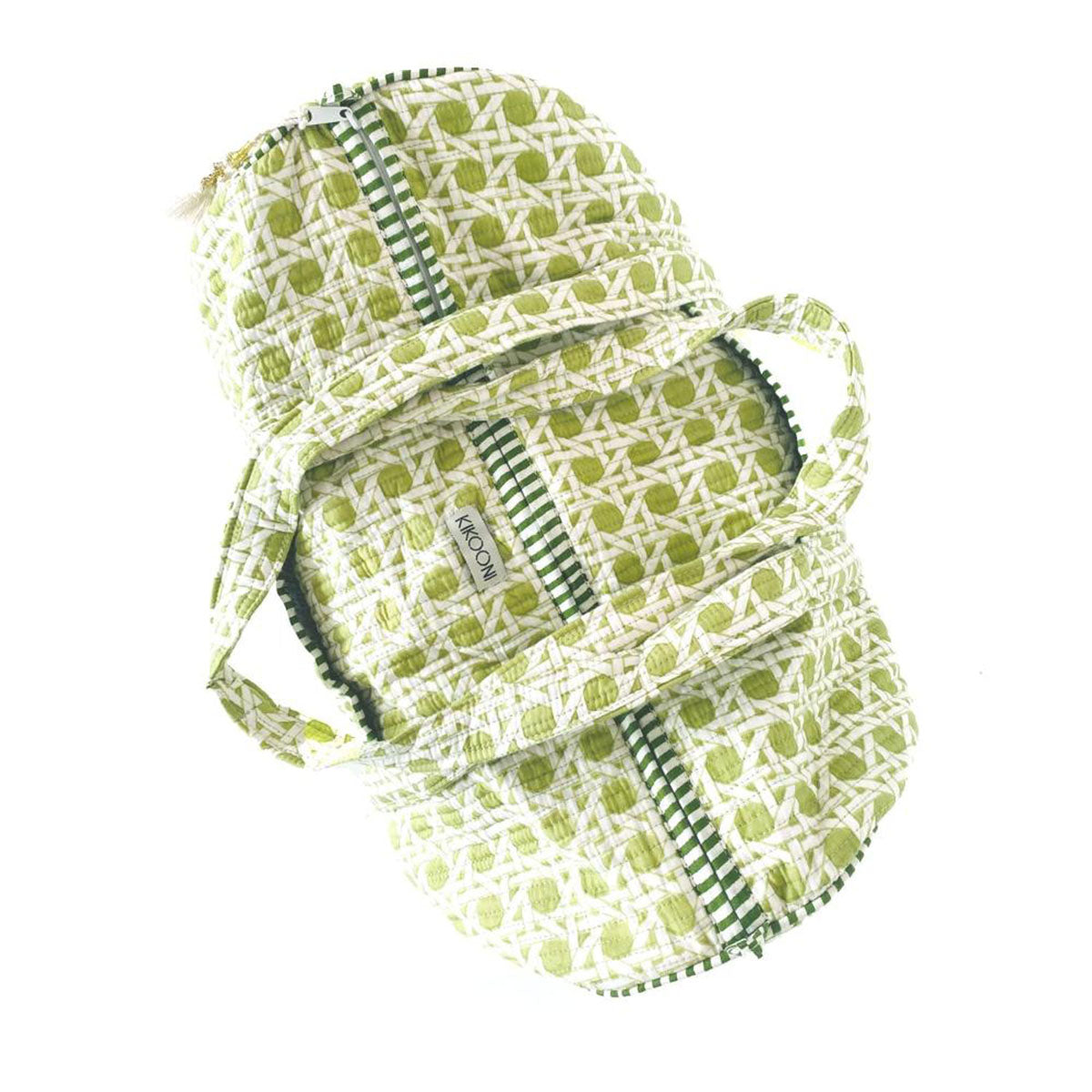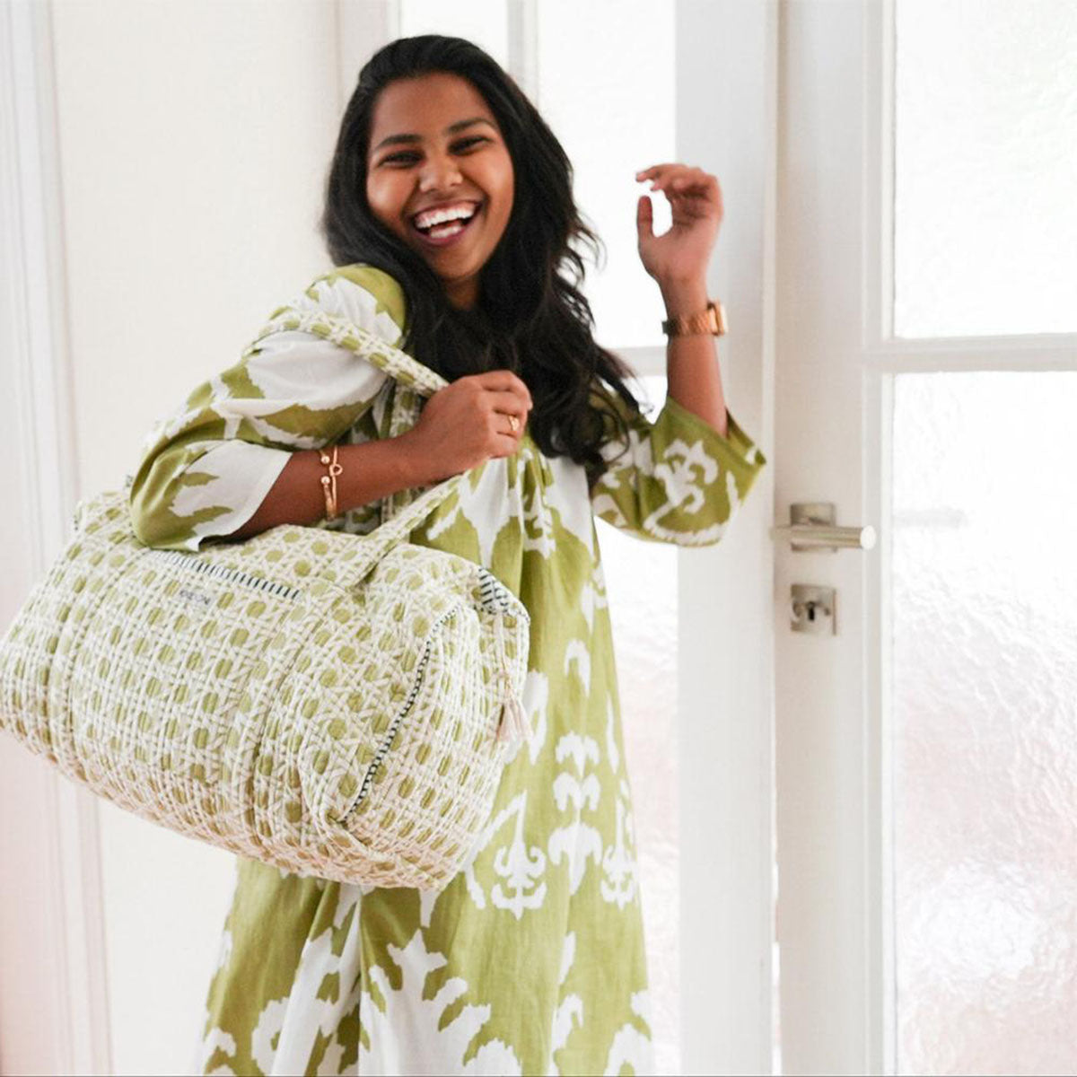 Liebevolle Handarbeit und einzigartige Details! Die verspielte und handgemachte Baumwolltasche "the green tree" kannst du als Sporttasche, als Strandtasche, als Wochenendtasche - einfach als deine Lieblingstasche für Alles benutzen. Du kannst mit Leichtigkeit dein XL Handtuch, deine Turnschuhe, deine Trinkflasche und Wechselklamotten unterbringen. Auch dein Bikini, Sonnencreme und Sonnenbrille haben locker Platz! Die Tasche ist auch perfekt dafür geeignet dich auf deinem Wochenendtrip zu begleiten und deine Wichtigsten und schönsten Teile unterzubringen. Auch deine Lieblings - KIKOONI - Kosmetiktasche kannst du zusätzlich noch super unterbringen! Das schönste: der Taschen ist ein Einzelstück und wird mit viel Liebe in Indien hergestellt. Die Mitarbeiter bedrucken den reinen Baumwollstoff mit Holzstempeln von Hand. Dieses Verfahren wird Blockprint genannt. Anschliessend besticken die Tasche mit der berühmten und traditionellen Kantha-Stickerei bestickt und finalisieren die Tasche mit den Quasten-Details am Reissverschluss. Die handgemachte Baumwolltasche "the green tree" ist bis ins kleinste Detail durchdacht und hebt sich federleicht vom Mainstream ab.