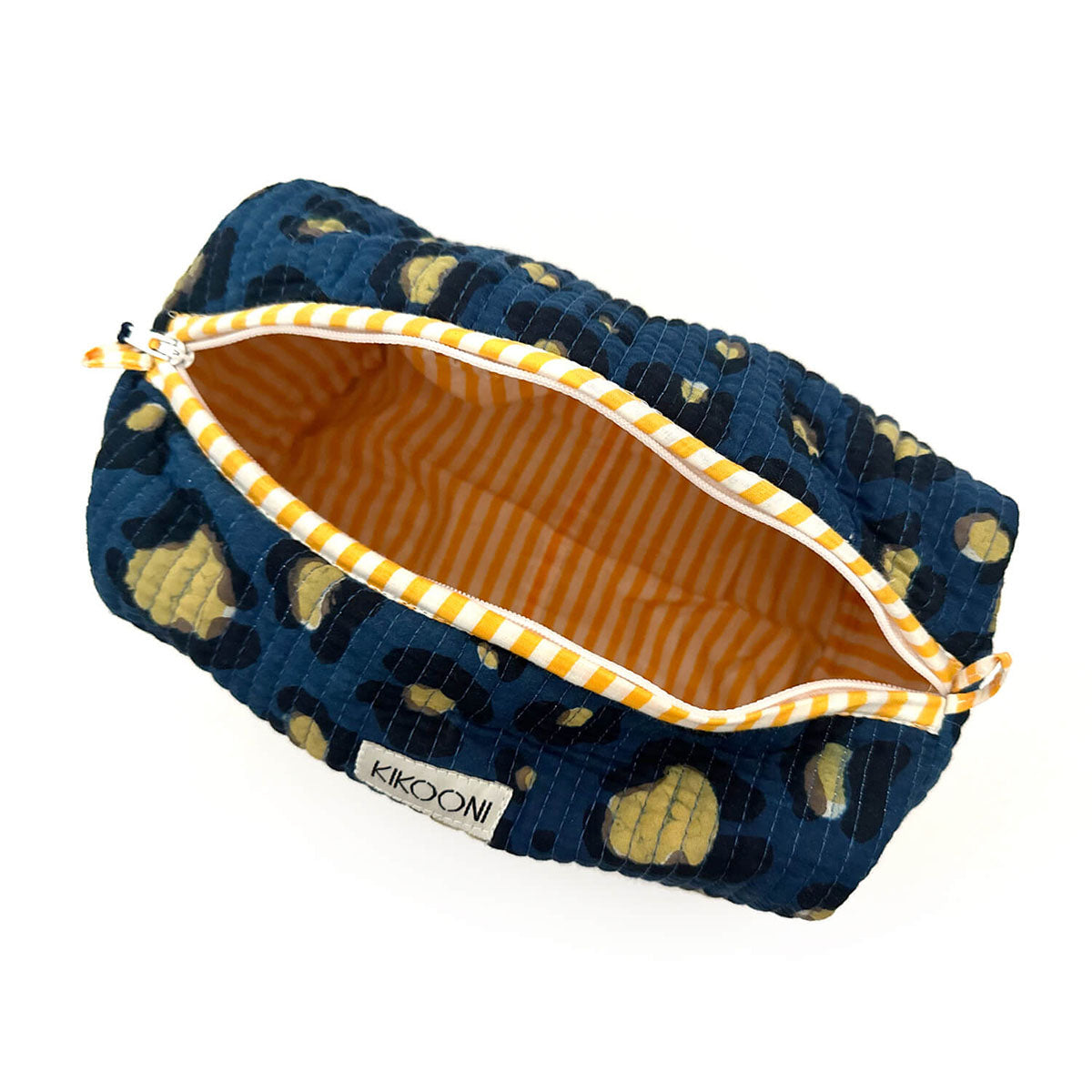 Da die Kosmetiktaschen alle handgemacht sind, unterscheiden sie sich alle in der Platzierung des Musters voneinander.