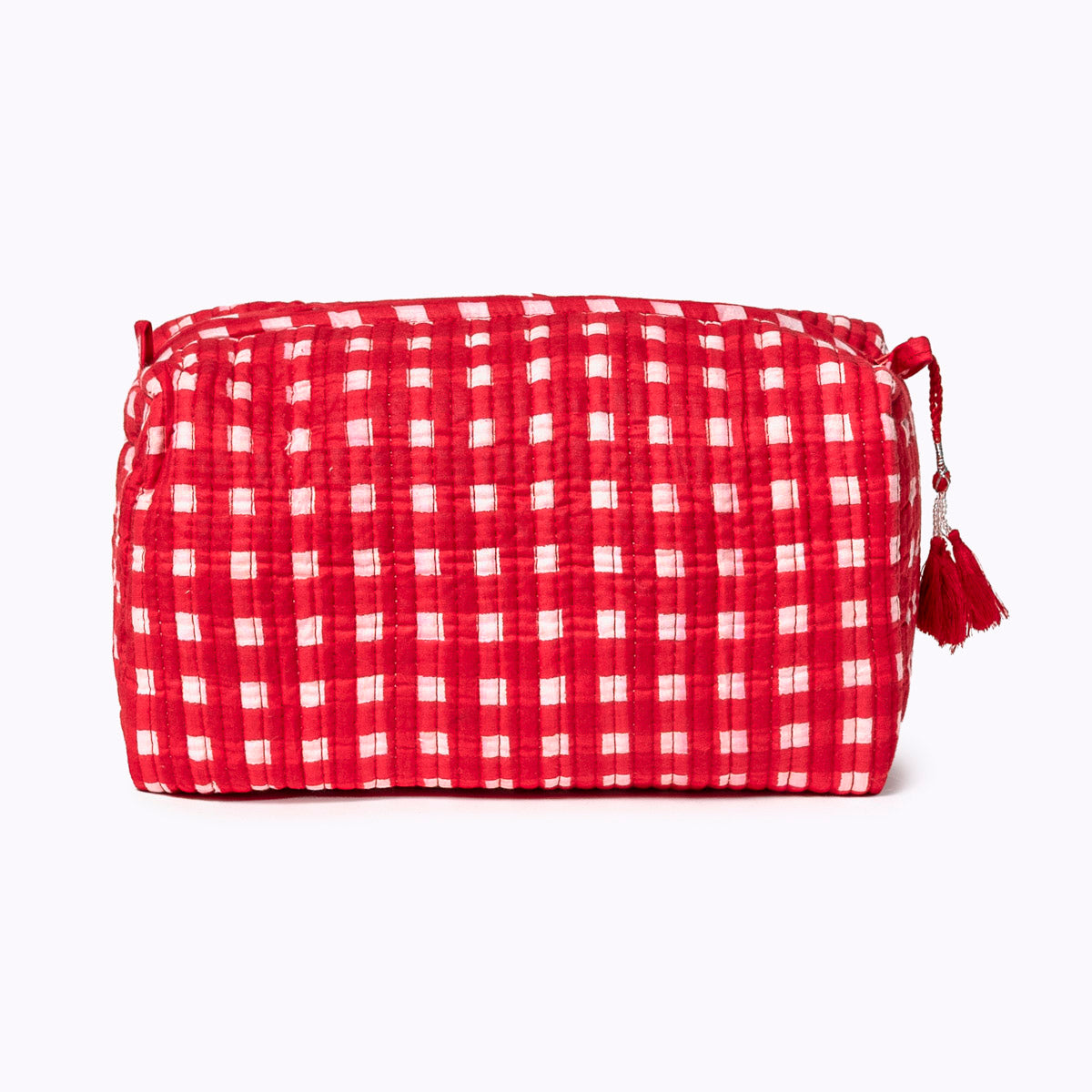 handgemachte Kosmetiktasche "HAPPY CHECKS" rot für jeden Tag!