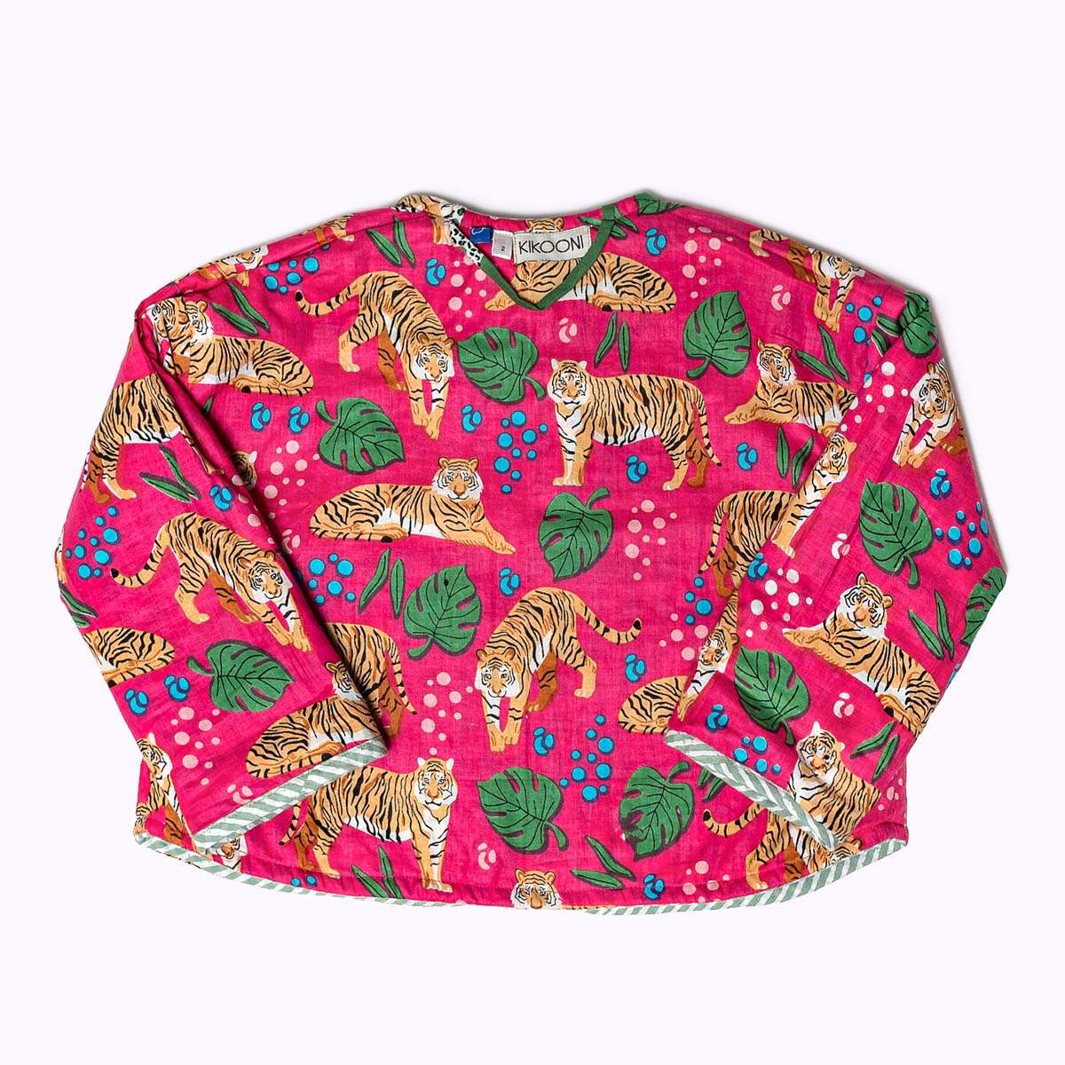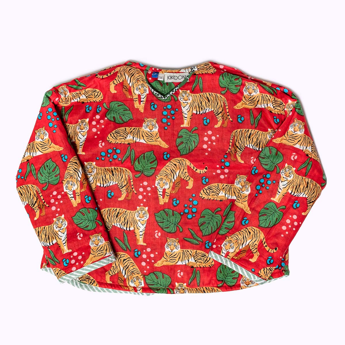 Details: 100% Baumwolle- wie bei all unseren KIKOONI Lieblingsteilen • Handbedruckt in traditionellen Techniekn • leicht wattiert & Cozy , perfekt für den Übergang, den Herbst, den Frühling, für laue Sommernächte und zum" Drunter- Ziehen" im Winter • Knöpfe aus Kokosnussschale oder Muschel , je nachdem welche Seite man nach aussen trägt.