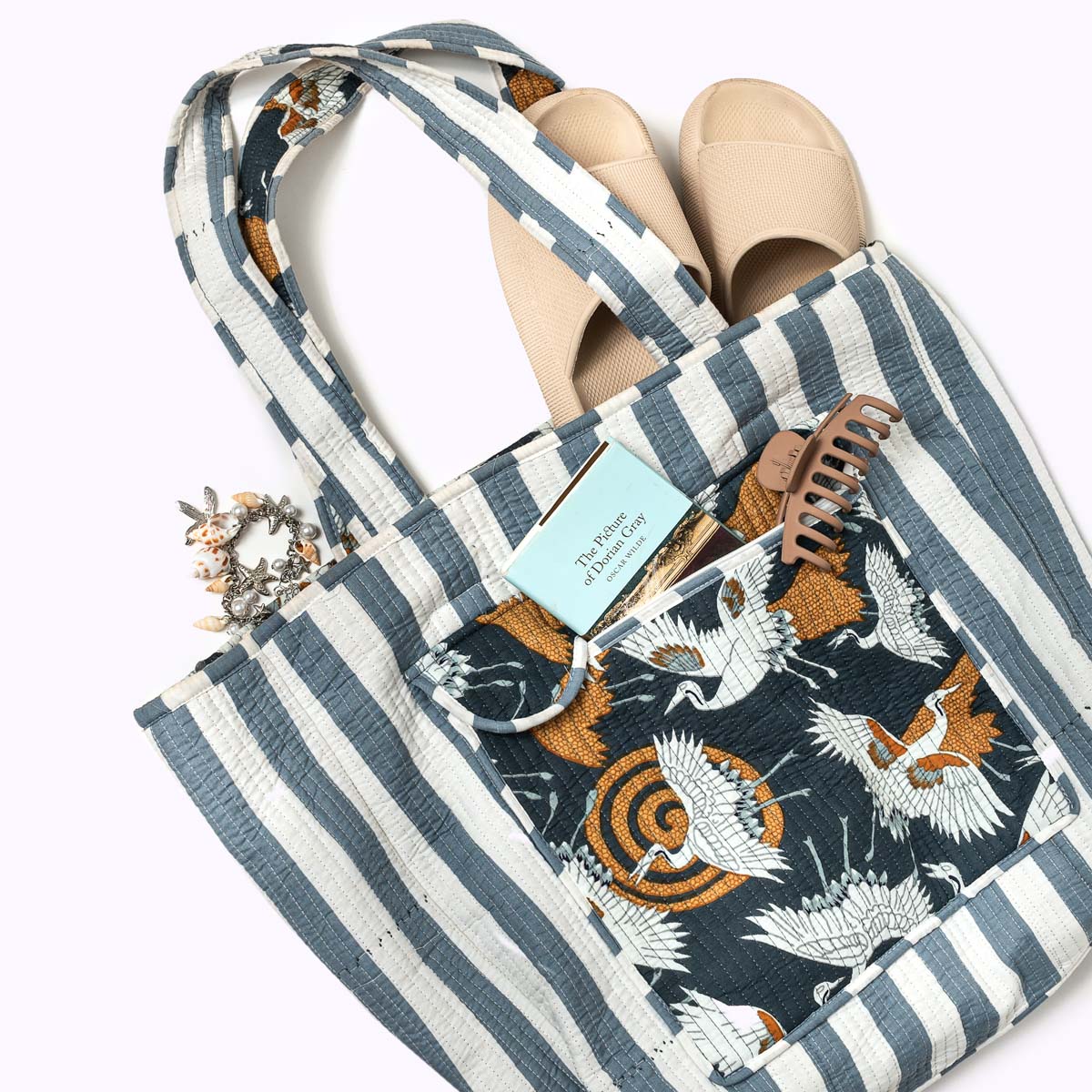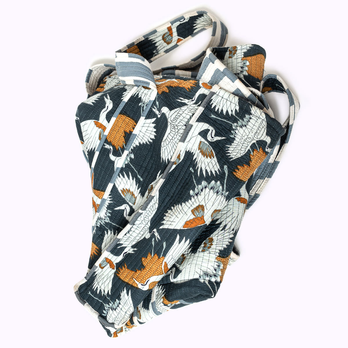 handgemachte großer XL SHOPPER "Grey Krane" - deine einzigartiger wendbarer! XL SHOPPER für wirklich jede Gelegenheit aus handbedruckter Baumwolle.